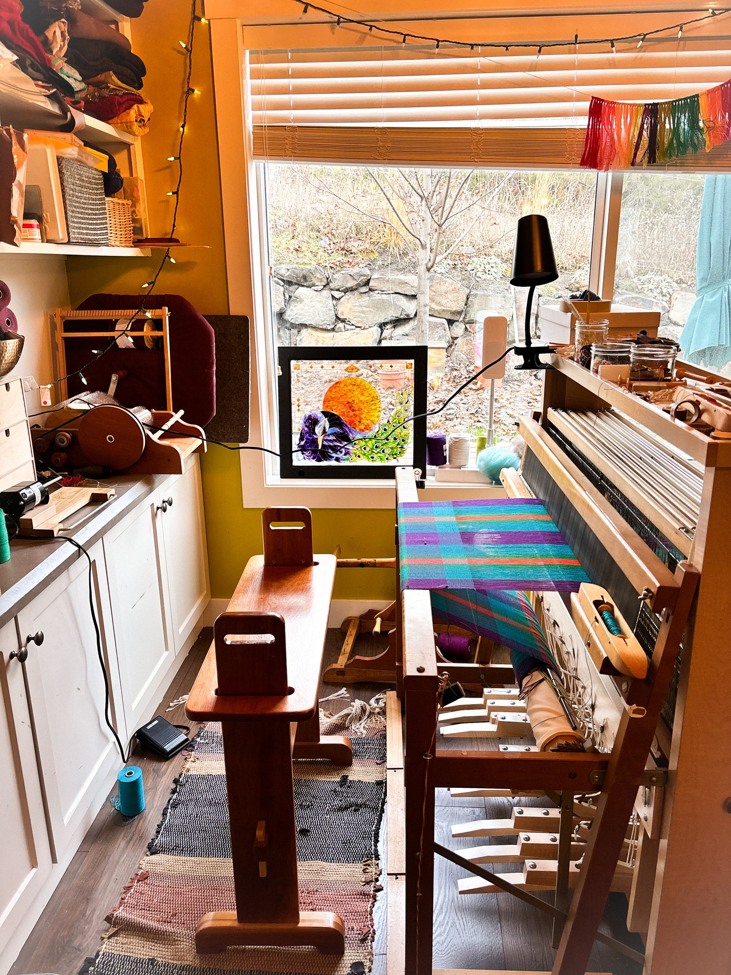 My mission is to offer high quality handwoven household and wearable textiles that reflect the beauty of the world around us. I use colour and quality materials that I spin, dye, and weave into artful pieces that stand the test of time. I strive to share my knowledge and passion for fibre arts with my local and online community, and connect consumers to their textiles in a more authentic way.